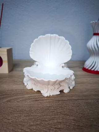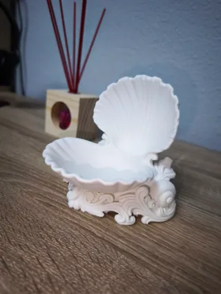 Plato joyero en forma de concha 🐚 Impreso en 3D, elegante y práctico para tus joyas diarias. Ideal para tocador o mesilla. Diseño original que llama la atención ✨ Consulta sin compromiso por stock de colores.