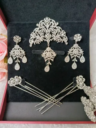 Conjunto de aderezo completo en plata, ideal para adolescentes y adultas.