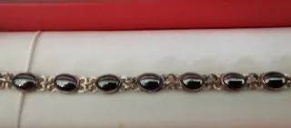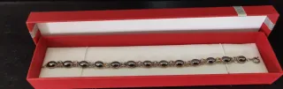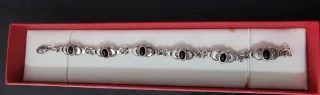 Elegante pulsera con incrustaciones de pirita negra y detalles en plata 925. - Diseño ovalado de las piedras. - Cierre de seguridad. - Montura de plata 925.