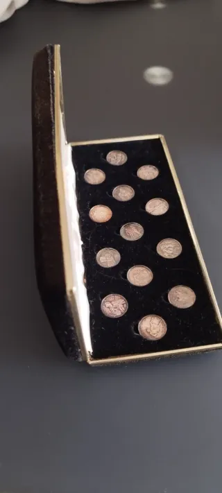 Conjunto de arras de plata. No las limpié hasta decisión del posible comprador. El estuche es el propio de la época y tiene signos del paso del tiempo pero está bien. - Presentado en una caja - Diseño clásico.