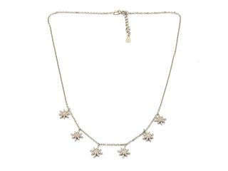 Elegante collar de bisutería con un diseño delicado. - Adornado con piedras en forma de lágrima. - Detalles metálicos plateados y toques rosados.