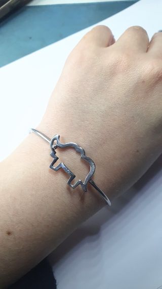 Vendo esta preciosa pulsera rígida de Plata de Ley con el silueta de un elefante calado. Diseño: Un elefante minimalista con la trompa hacia arriba (símbolo de fortuna y prosperidad). Material: Plata de Ley de alta calidad con acabado pulido. Cierre: Es de tipo rígido pero flexible, se abre y se encaja en la trompa del elefante. En buen estado, casi como nueva. Hago envíos rápidos por Wallapop o entrega en mano. Si tienes cualquier duda, ¡escríbeme! 📩