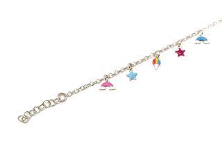 El precio mostrado es el de venta en nuestra tienda. El precio de este producto en nuestra página web puede ser diferente. Este artículo está disponible en nuestra tienda de Badajoz. pulsera plata 925mm CC064_G14810_0 es un objeto que se ofrece en estado a estrenar. Todos nuestros productos cuentan con garantía de 3 años y un plazo de devolución de 14 días. Gramos: 2.02 | Marca: Converters | Contraste: Si | Tipo de oro en kilates: Plata primera ley (plata 925mm) | Detalles joya: Pulsera infantil estrella, arcoiris y globo | Piedras: 0 | Genero-tipo: Infantil | Estado producto: No | Piedra con calor: 14 2 | Tipo de piedra: Sin