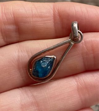 Este colgante presenta una piedra turquesa natural engastada en plata.