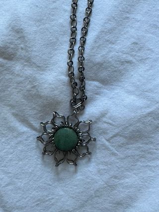 Elegante conjunto de joyería con un diseño delicado y un toque de color. - Incluye collar, pendientes y pulsera. - Detalles en filigrana metálica. - Abalorios de piedra verde.