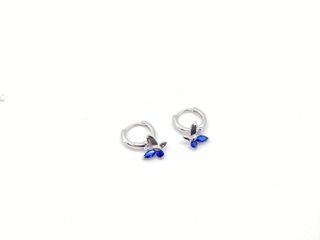 Elegantes pendientes de plata con un detalle de piedra azul. - Diseño moderno y minimalista. - Combinación de plata y piedra azul.