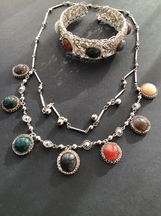 Conjunto de collar y pulsera. Plata y piedra Ágata. Obra única de un artista. Muy bonito, nadie va a tener uno igual. Very nice jewelry set. One of a kind!