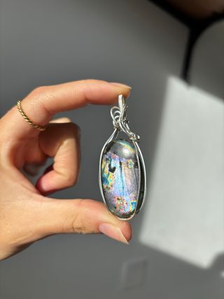 Colgante de plata de ley con piedra labradorita que muestra destellos de colores. Primera foto: 36€ Segunda: 34€ Tercera: 28€ ojo de tigre, labradorita, colgante, artesanal, plata, plata de ley, larimar, lapislazuli, lapis lazuli, cuarzo, rosa, blanco, cristales, joyas, piedras