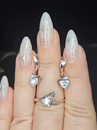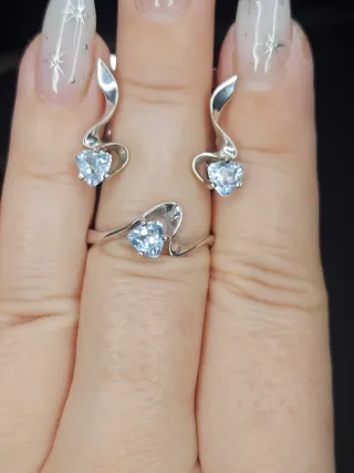 ✨ Conjunto nuevo de plata 925 con topacio natural ✨ Elegante conjunto de plata de ley 925 con topacio natural, compuesto por anillo y pendientes. Diseño delicado y atemporal, ideal para regalar o para ocasiones especiales. 💎 Detalles: Material: Plata 925 Piedra: Topacio natural Pendientes con cierre inglés (seguro y cómodo) Anillo: talla europea 54 El conjunto es nuevo, nunca usado