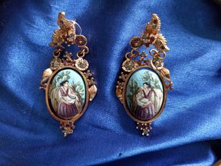 Pendientes de plata con pintura en miniatura italy