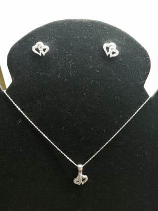 Hermoso juego de collar y aretes de Corazones. - Plata ley 925 Italiana. - Decorado con brillantes. - Envío rápido y confiable.