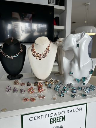 Se vende por cierre de local Conjunto de bisutería con diseños modernos y elegantes. - Piezas con acabados en dorado y plateado. - Diseños variados para complementar cualquier atuendo.