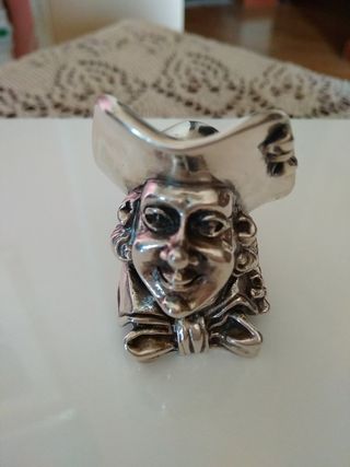 Figura miniatura de pirata en plata .925. Personaje caracterizado con sombrero y detalles de época. Pieza coleccionable temática de manufactura italiana. Acabado oxidado artístico. CARACTERÍSTICAS TÉCNICAS Material: Plata .925 Época: Siglo XX Procedencia: Potenza, Italia Estado: Muy bueno Autenticidad: Plata .925 sellada