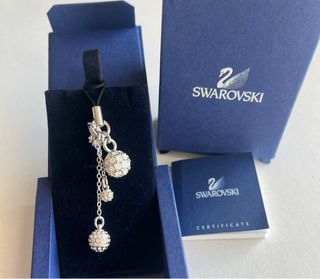 Este accesorio de Swarovski es perfecto para darle un toque de brillo a tu móvil o bolso. Accesorio charm colección Swarovski. Esferas de diferentes tamaños en color plateado con cristales de la marca acompañados de un pequeño cisne símbolo de Swarovski. Nuevo a estrenar con packaging original y completo. Perfecto para regalo