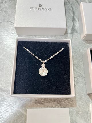Elegante collar de la marca Swarovski, con un diseño delicado y brillante. - Acabado plateado. - Detalles con cristales. - Cierre seguro.