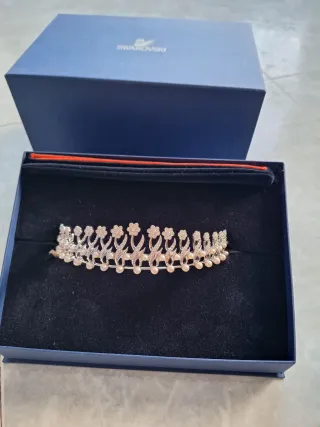 Este accesorio de Swarovski se puede usar como collar o pulsera. - Diseño brillante y elegante. - Acabado plateado.