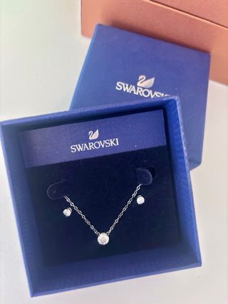 Perfecto regalo de San Valentin ❤️ Elegante conjunto de joyería de la marca Swarovski. - Diseño de cisne icónico. - Incluye collar y pendientes a juego. - Acabado plateado brillante.