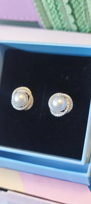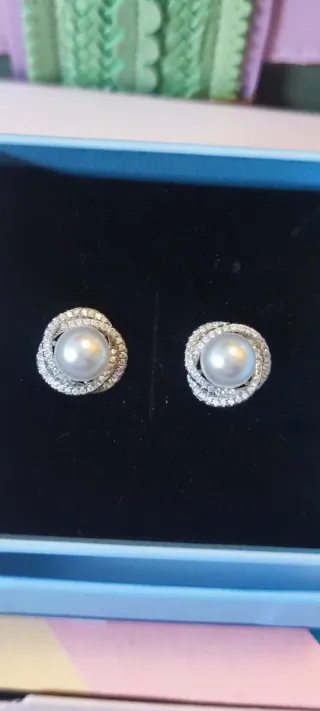 Elegantes pendientes con perla central y circonitas engastadas en un diseño plateado 💎 Diseño de lujo - Material acero inoxidable de alta calidad y cristales de circonio Swarovski. -Piezas duraderas, que no se oxidan ni ennegrecen con el tiempo 🛑Se trata de joyas artesanales confeccionadas en joyería local, elaboradas con cristales Swarovski adquiridos a proveedor, pero no forman parte de la marca ni están asociadas a ella. 🎁 Perfectos para regalo o para dar un toque especial a cualquier look. Acero inoxidable