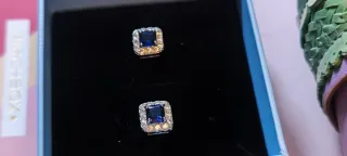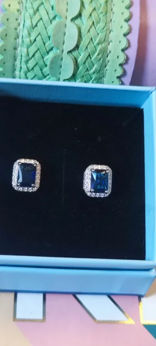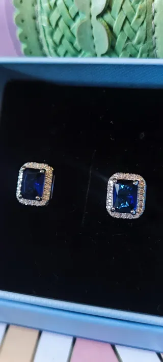 Elegantes pendientes con un diseño rectangular y un llamativo zafiro azul en el centro. Están rodeados por pequeñas circonitas que aportan un brillo adicional. 💎 Pendientes con diseño de lujo - Material acero inoxidable de alta calidad y cristales de circonio Swarovski. -Piezas duraderas, que no se oxidan ni ennegrecen con el tiempo - Ideales para quienes buscan elegancia y distinción a un precio accesible. 🛑Se trata de joyas artesanales confeccionadas en joyería local, elaboradas con cristales Swarovski adquiridos a proveedor, pero no forman parte de la marca ni están asociadas a ella.