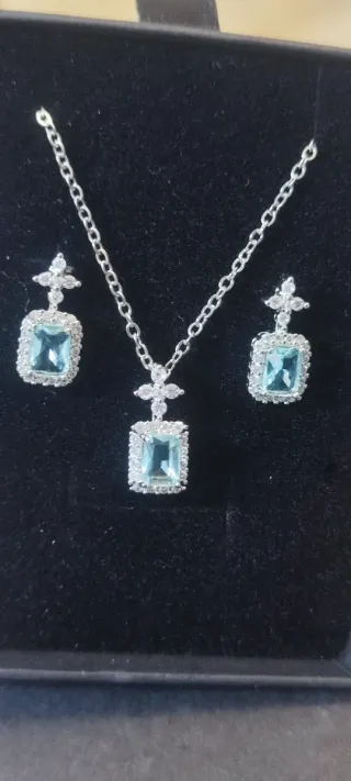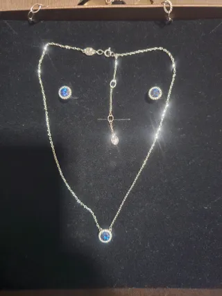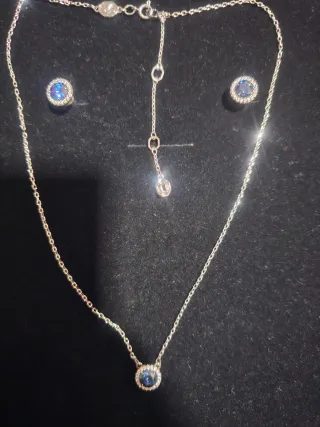 Elegante conjunto de joyería que incluye collar y pendientes. 💎 Diseño elegante - Material acero inoxidable de alta calidad y cristales de circonio azul Swarovski. -Piezas duraderas, que no se oxidan ni ennegrecen con el tiempo 🛑Se trata de joyas artesanales confeccionadas en joyería local, elaboradas con cristales Swarovski adquiridos a proveedor, pero no forman parte de la marca ni están asociadas a ella. 🎁 Perfectos para regalo o para dar un toque especial a cualquier look.