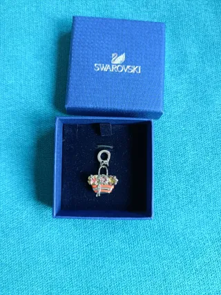 Sin usar. Edición muy limitada. Precioso colgante,charm"Swarovski" cesta con el material característico de la marca en color plateado y naranja,con cristales Swarovski. Logotipo grabado en el charm. Es precioso,muy alegre y original. Una joya muy especial. No va con caja original