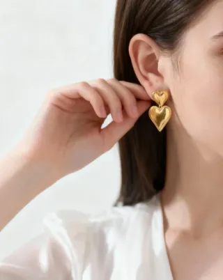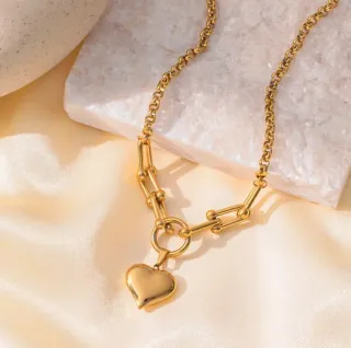 Elegante conjunto de joyería con diseño de corazón. Diseño: - Collar con colgante de corazón y cadena de eslabones. - Pendientes a juego con forma de doble corazón. Detalles: Material: Acero inoxidable bañado en oro 18k 💫 Color: Dorado 🥇
