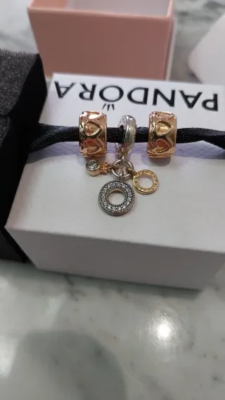 Se venden dos conectores circulares de Pandora ME ( en color oro rose), originales y sin estrenar. Las compré en la tienda online de Pandora. Cada conector se abre para poder colgar los charms. Se entregan en la caja de la marca, que sale en la foto. 23€/ unidad, 40€- los dos (PVP -39€/unidad) Se entregan en el barrio Jesús o por envío wallapop.