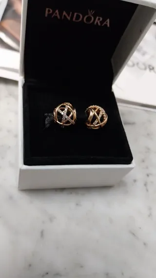Preciosa charm de Pandora con forma de esfera y estrellas brillantes. Incluye goma . Está en perfecto estado. - Diseño elegante y delicado. - Ideal para añadir a tu pulsera Pandora.