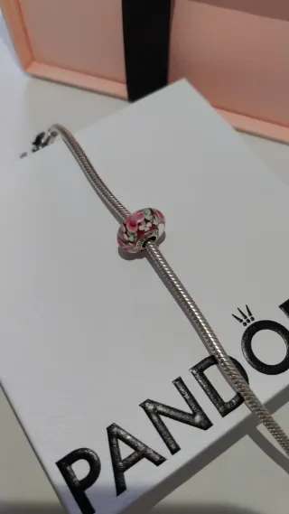 Precioso charm de Pandora con un diseño floral delicado. - Elaborado en cristal con incrustaciones de flores. - Detalle de aro metálico central.