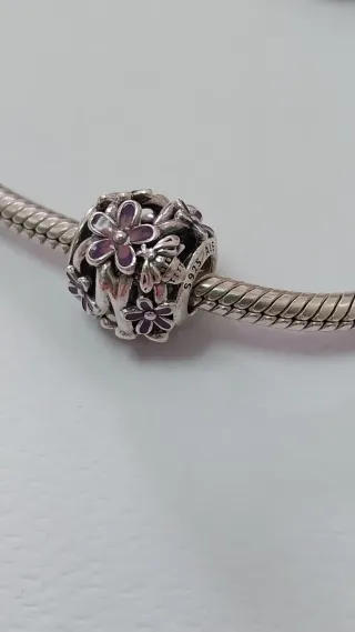 Precioso charm de Pandora con un diseño floral. - Elaborado en cristal. - Motivos de flores en tonos rosas y morados.
