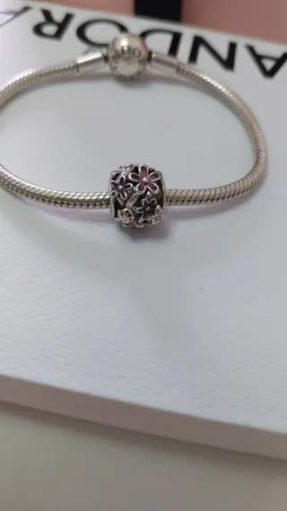 3 Charm Pandora: Margarita Rosa y 2 separadores.