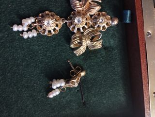 Aderezo de rodio envejecido ( plata ) Modelo polcas , sirve tanto para bebe/niña como para adulta (huertana, vestir a l, Antiga ? Solo tiene 2 puestas , perfecto estado Joia 4 cm Pendientes 3 cm