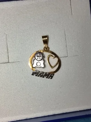 Colgante de oro 18 kilates con diseño de MAMA, un bebé con circonita y un corazón. - Fabricado en dos tipos de oro. - Peso aproximado de 1 gramo. -Piedra circonita Hago envíos!!!