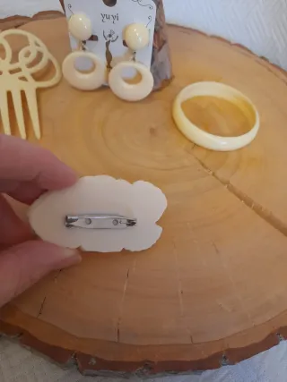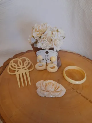 Conjunto de complementos para flamenca. Talla niña - Peine decorativo. - Pendientes colgantes. - Pulsera rígida. - Broche con diseño de flor. *Más complementos moda flamenca y feria en mi perfil