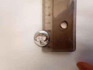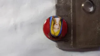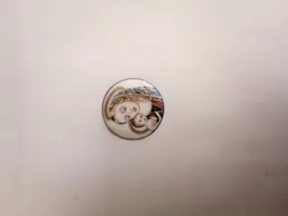 Precioso esmalte al horno con un diseño circular. Madona con niño o virgen María con niño. Precioso Esmalte al horno con fondo blanco. - Diseño de caras. - Acabado multicolor.