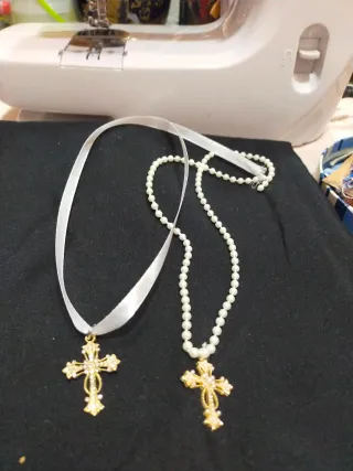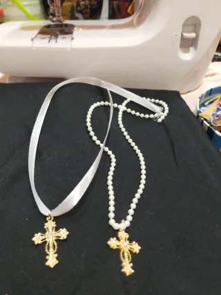 Conjunto de dos cruces de fallera para niña. Un detalle precioso para lucir en fiestas. - Diseño dorado con detalles. - Cuentas blancas.