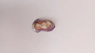 Precioso esmalte al horno con un tierno diseño. Esmalte vitrificado al fuego. - Motivo de un niño durmiendo. - Tonos pastel en azul y rosa.