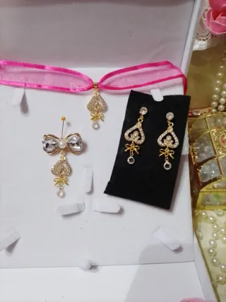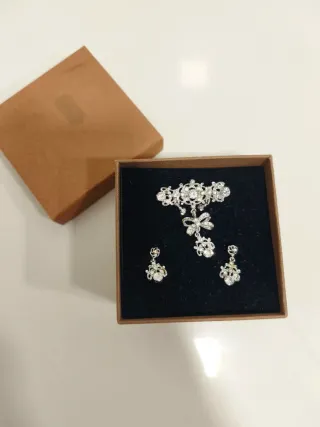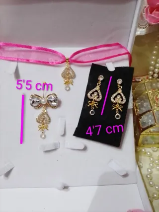 Conjunto de aderezo y pendientes para niña. - Diseño elegante con detalles. - Aderezo con colgantes. - Pendientes a juego. Medidas joia 8x7 cm y pendientes 5cm