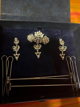 Precioso Conjunto de aderezo para fallera infantil. Le falta alguna piedrecita - Diseño intrincado con pedrería. - Incluye varias piezas para el peinado.
