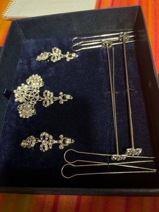 Conjunto de aderezo fallero para niña. - Diseño en plata con detalles. - Incluye varias piezas para el cabello. - Usado dos veces - Perfecto estado