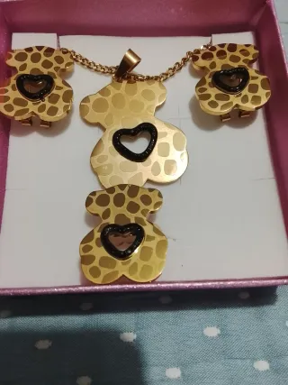 *Precioso conjunto de la marca Tous con diseño de oso. * Piezas en tono dorado. *Detalles en color morado. * Incluye pendientes y cadena. *Hago envíos por Wallapop e Inpost.