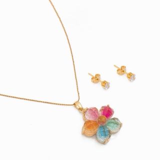 Conjunto Collar y Pendientes Flor Multicolor