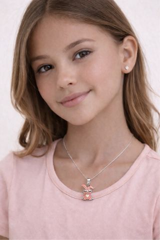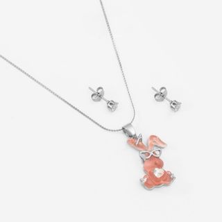 Conjunto de joyería de acero inoxidable con un adorable diseño. - Collar con colgante de conejito. - Pendientes a juego.