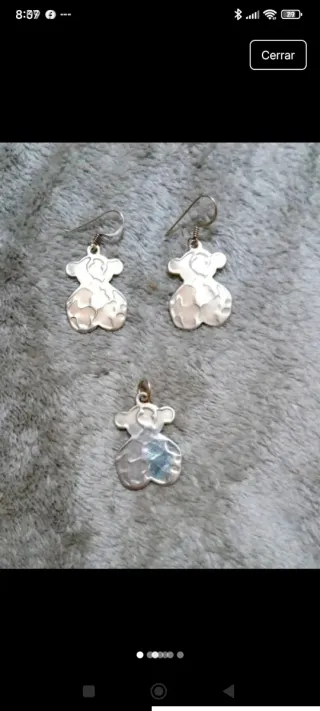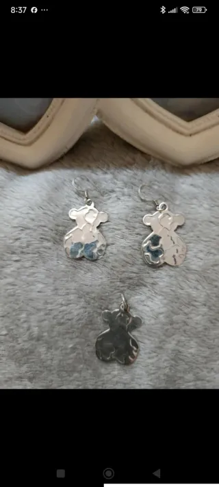 Conjunto de joyería de plata de primera ley. - Incluye un par de pendientes tipo Tou - Incluye un colgante de oso tipo Tou - Lleva el contraste de 925 que es el de 1° ley en España