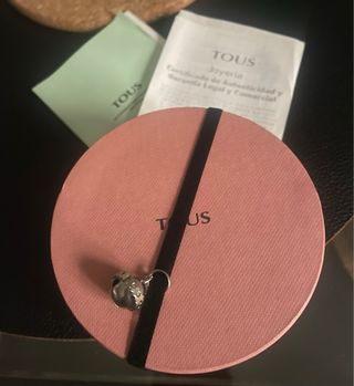 Preciosa caja de regalo TOUS en color rosa, ideal para guardar tus joyas. - Incluye charm de plata. - Cinta negra decorativa.