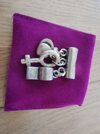 Este charm de plata tiene un diseño abierto con varias huellas. Nuevo, me lo regalaron hace unos años por un cumpleaños pero yo no tengo la pulsera. Se vende por eso, porque no tengo la pulsera y no tengo penado cómpramela. Es de plata y nunca ha sido utilizado - Diseño de huellas de animal. - Material: Plata.
