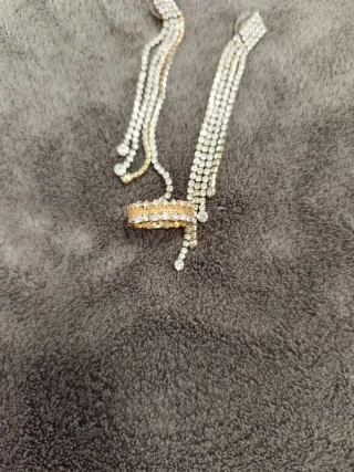 Elegante conjunto de bisutería. - Pendientes largos con detalles brillantes. - Anillo a juego con diseño texturizado.