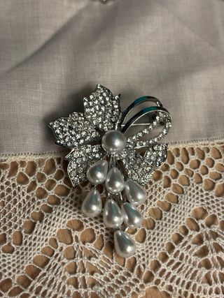 Conjunto de aderezo fallero con camafeo y perlas. Nunca usado , con su caja - Diseño detallado con camafeo central. - Adornado con múltiples perlas. - Acabado plateado.