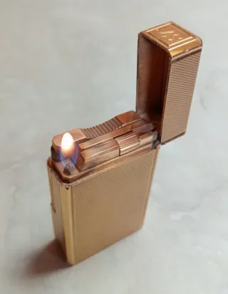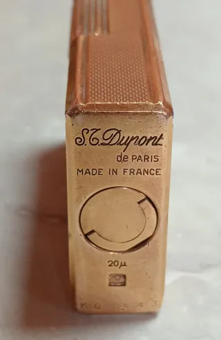 Encendedor S.T. Dupont de París, con un acabado en oro de 20 micras. - Fabricado en Francia. - Diseño clásico y elegante.