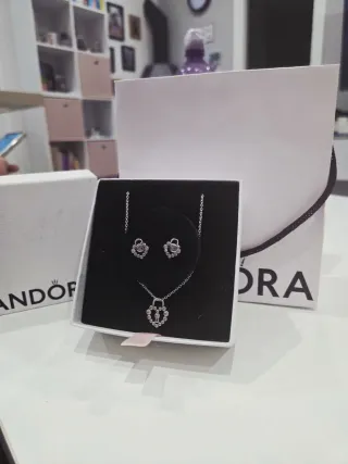 Conjunto de pendientes y colgante Pandora con diseño de flor. - Detalles de circonitas cúbicas brillantes. - Plata - Con bolsita Pandora y por dentro de raso rosa nude y separadores. -Ideal para regalo y estas navidades! -Usado en dos ocasiones. -Precio original 60+65=125 OFERTA SOLO 70€